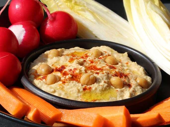 - Spread the hummus into a flat serving dish and garnish with the reserved beans and a drizzle of olive oil.