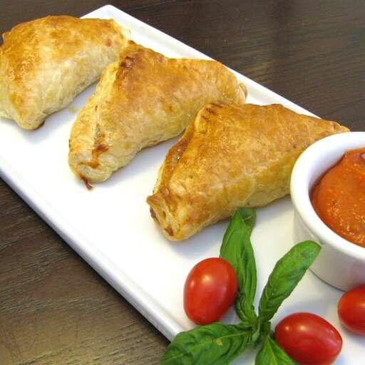 - Beat remaining egg with water in a small bowl. Brush edges of each pastry square lightly with egg wash. Place a heaping tablespoon cheese mixture in the center of each square. Fold pastry over filling and seal edges with a fork. Transfer to the prepared baking sheet, brush tops with remaining egg wash, and sprinkle with sesame seeds.