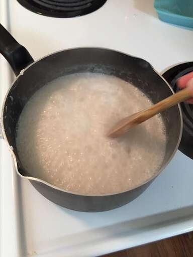 - Bring the coconut milk and brown sugar to a boil together in a heavy-bottomed pot. Reduce heat to medium low; cook and stir while boiling until the mixture is thick and the volume has reduced by about half, about 20 minutes.