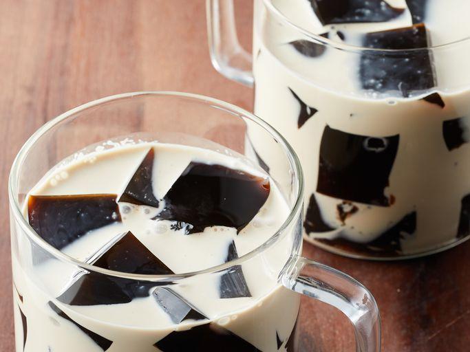 This coffee jelly is a refreshing Japanese summertime treat made with coffee, powdered gelatin, and sugar. My favorite way to serve it is with frozen whipped cream and chocolate sauce, although it’s also delicious with ice cream, regular whipped cream, or flavored coffee cream. It can be served solid in glasses or cubed in bowls.