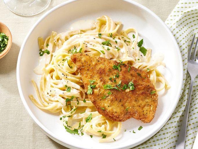 This copycat chicken fritta features juicy fried chicken cutlets with a delicate, lightly crisp Asiago and breadcrumb crust, served over fettuccine in a luxurious, creamy Asiago cheese sauce. You’ll love this homemade version of the Olive Garden favorite.