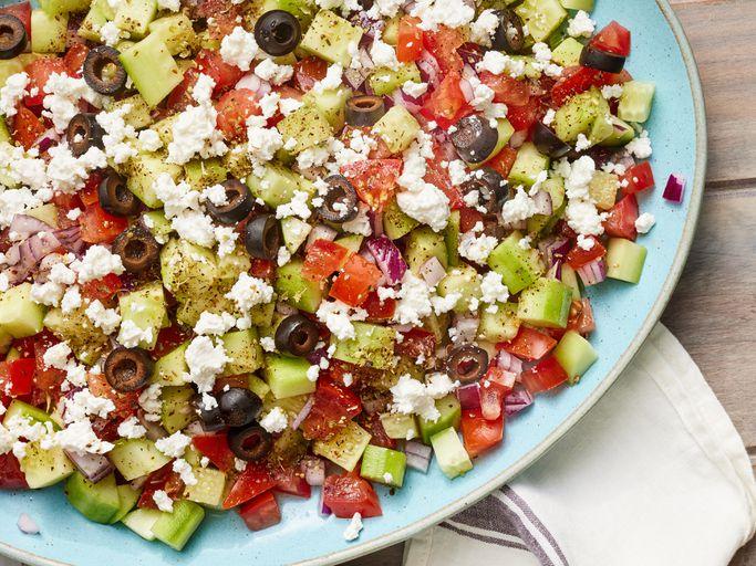 This Greek cucumber salad with red onion, tomatoes, and feta cheese is a wonderful summer salad.