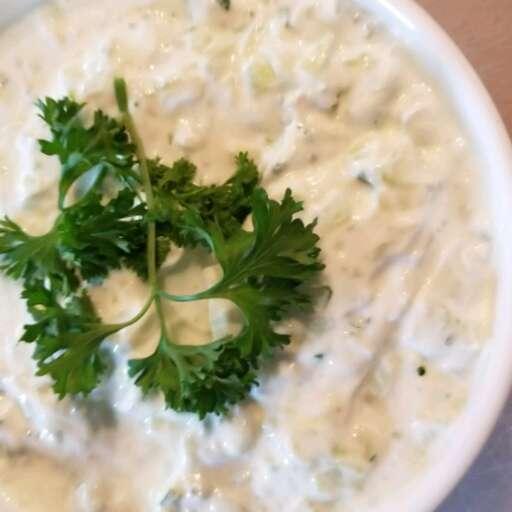 This homemade tzatziki sauce is simple to make with 4 ingredients in a matter of minutes for a creamy topping on kabobs or a refreshing dip for pita chips.