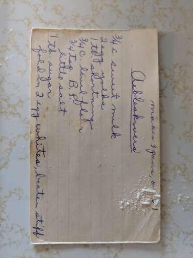 - Mix flour, sugar, baking powder, and salt together in a second bowl. Mix in egg yolks, condensed milk, and shortening. Fold in egg whites.