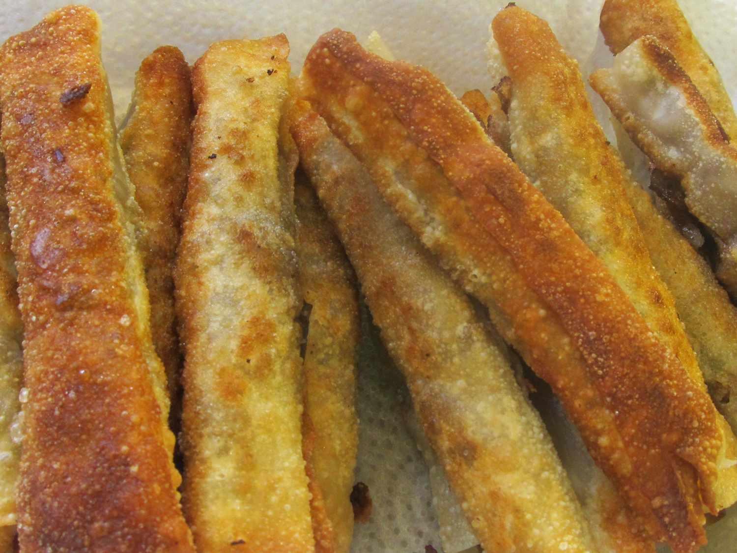 - Working in batches, fry lumpia in hot oil, turning once, until golden brown, 3 to 4 minutes. Drain on a paper towel-lined plate. Cut lumpia in half, or serve as-is with dipping sauce.