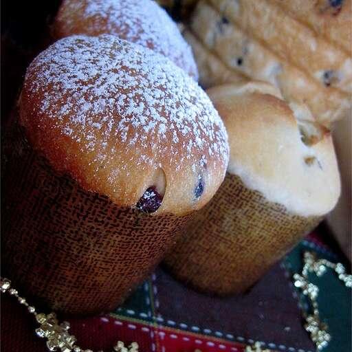 2. Combine butter and remaining 3 ½ cups flour until crumbly. Slowly pour in egg mixture and beat on high speed 3 to 4 minutes, until dough is elastic looking and long strands form. Beat in fruit and zests. Turn dough into oiled bowl, cover with plastic wrap, and leave in a warm place to rise until doubled, about 2 to 3 hours.