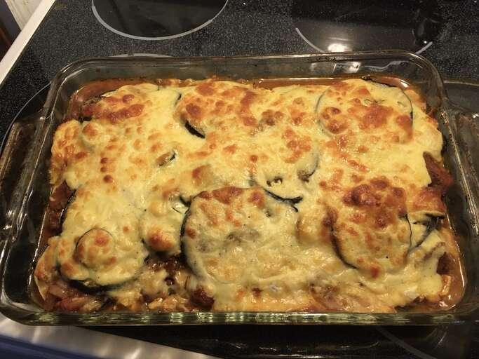 This vegetarian moussaka recipe always gets rave reviews from vegetarians and non-vegetarians alike. Easy to make, but takes time. Serve with salad.